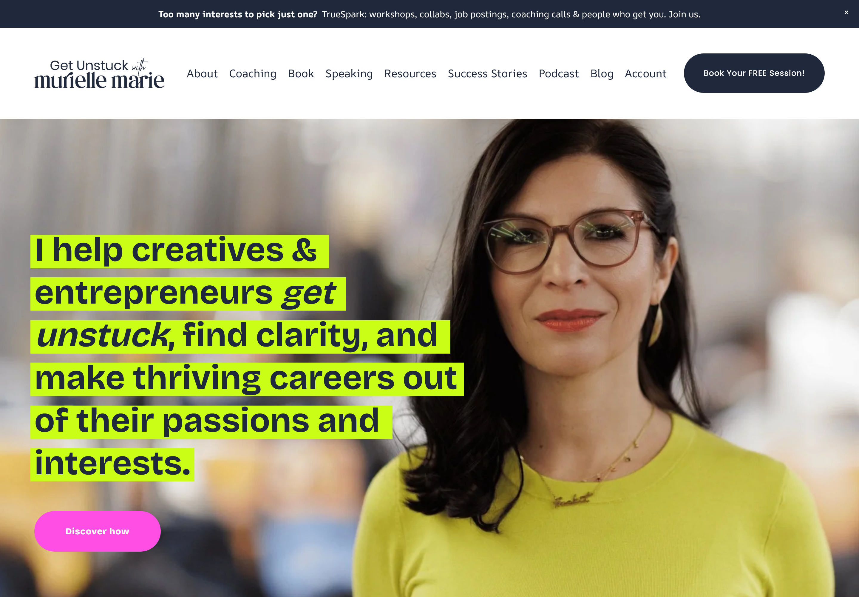 Focused on helping creative entrepreneurs, multi-passionate professionals, and individuals feeling “stuck” to gain clarity, overcome fears, and design fulfilling careers and businesses. Its tech stack changed over the years, now its using SquareSpace, but we originally built it on WordPress.