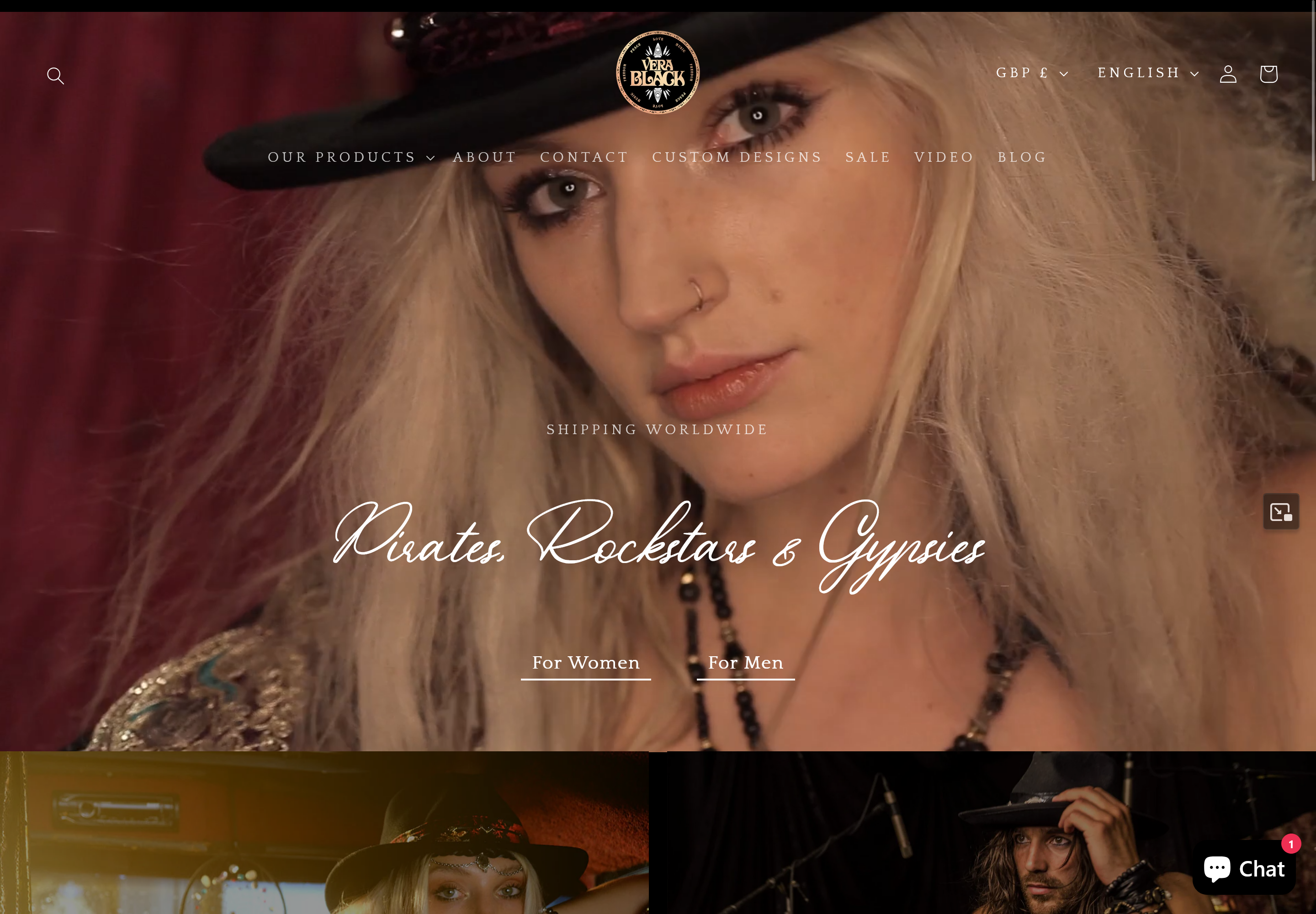 The official online store of Vera Black, a fashion brand specialising in unique, handmade clothing and accessories with a distinctive rock-and-roll, bohemian, pirate-inspired aesthetic.
